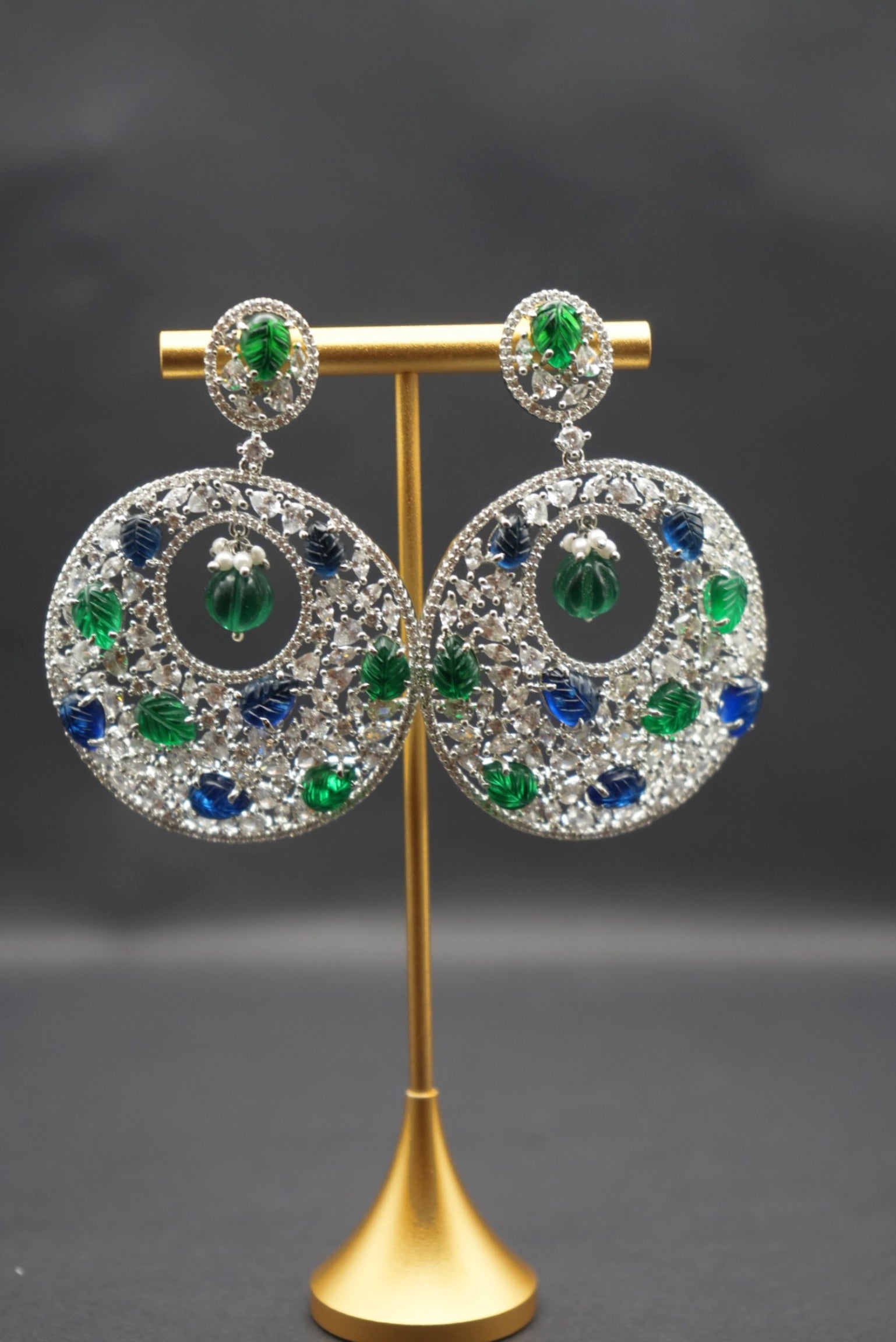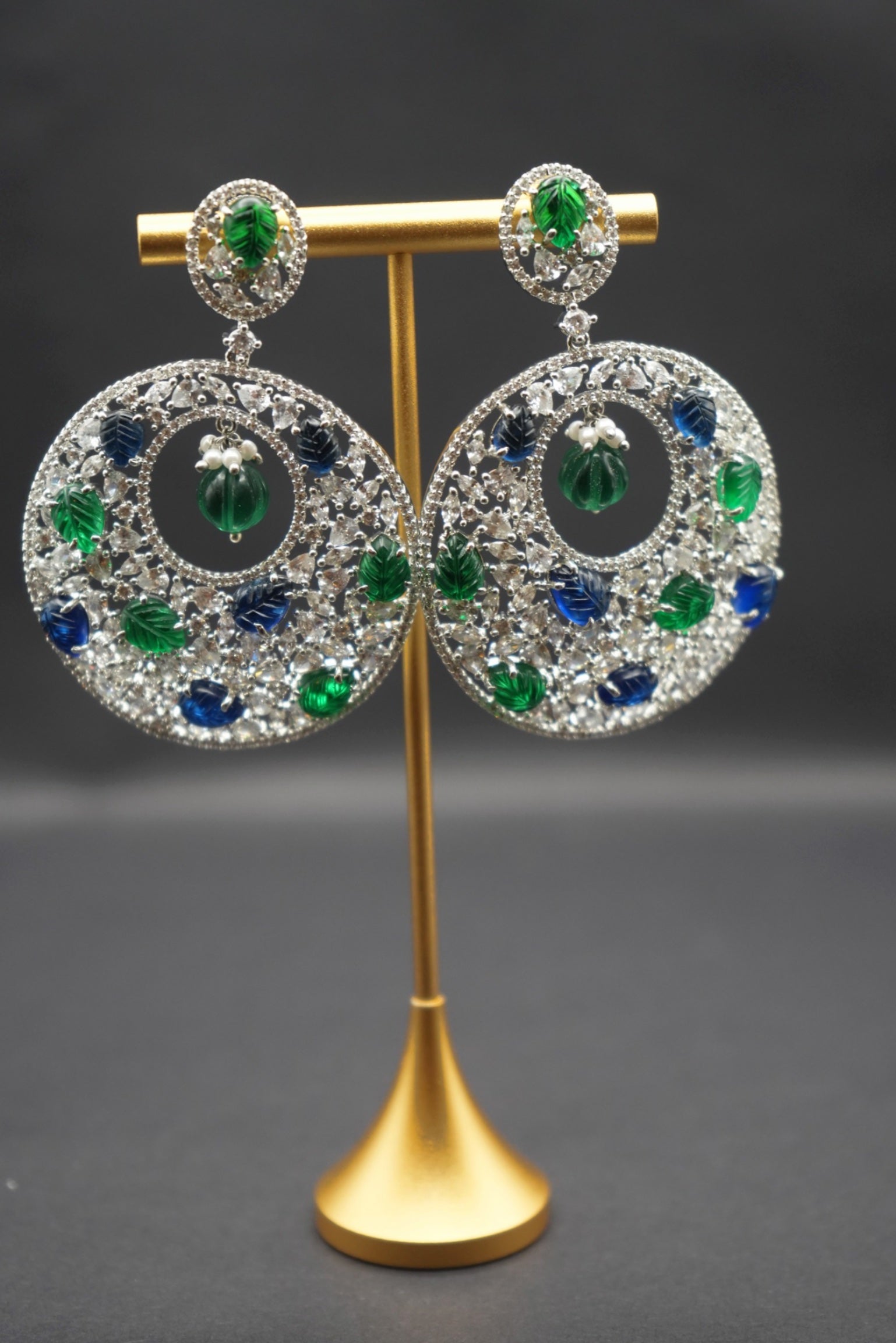 Bold Crystal Circle Earrings with Green and Blue Accents