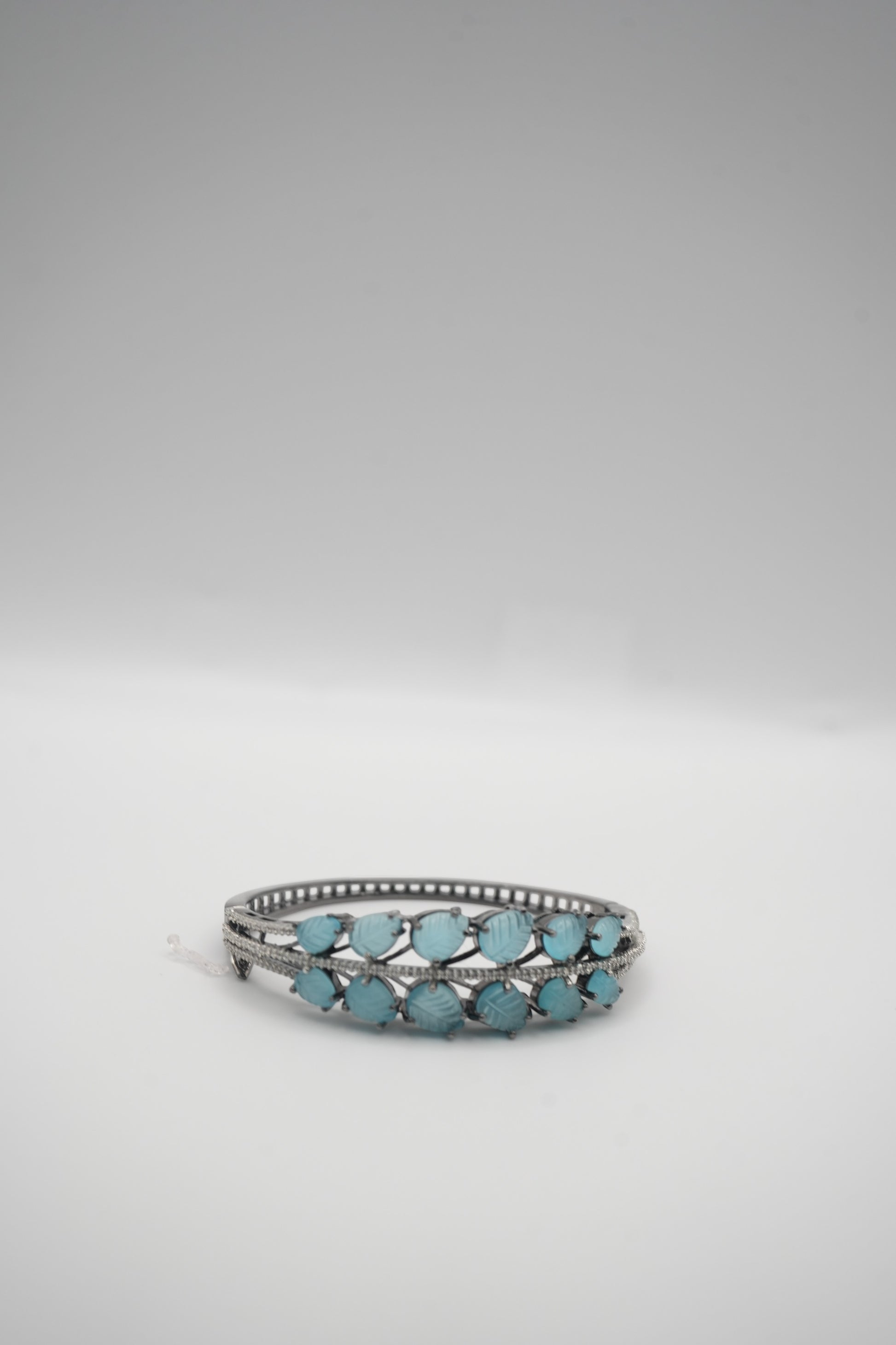 - Leaf Carvings: Vibrant turquoise stones intricately carved with leaf patterns.