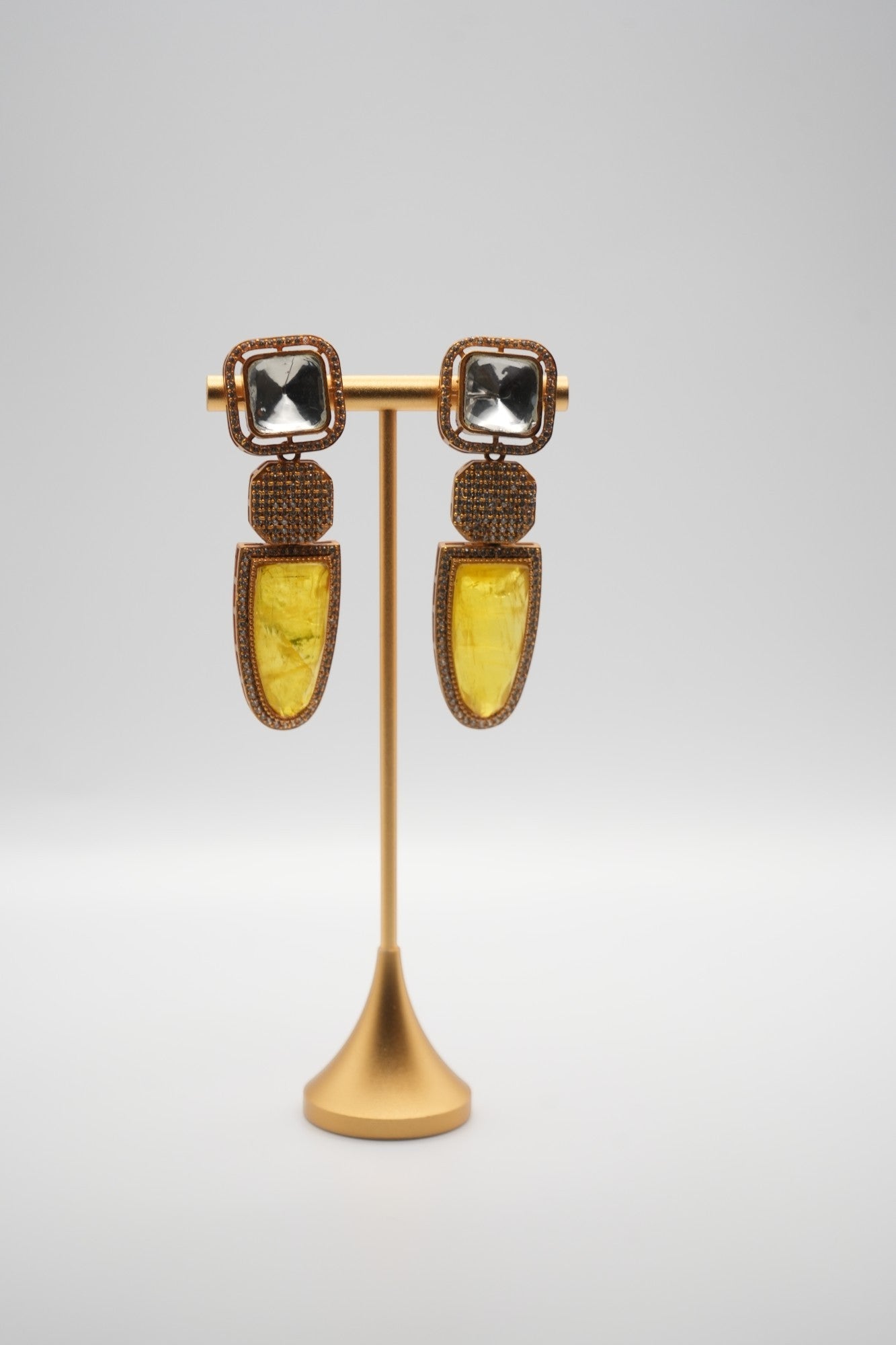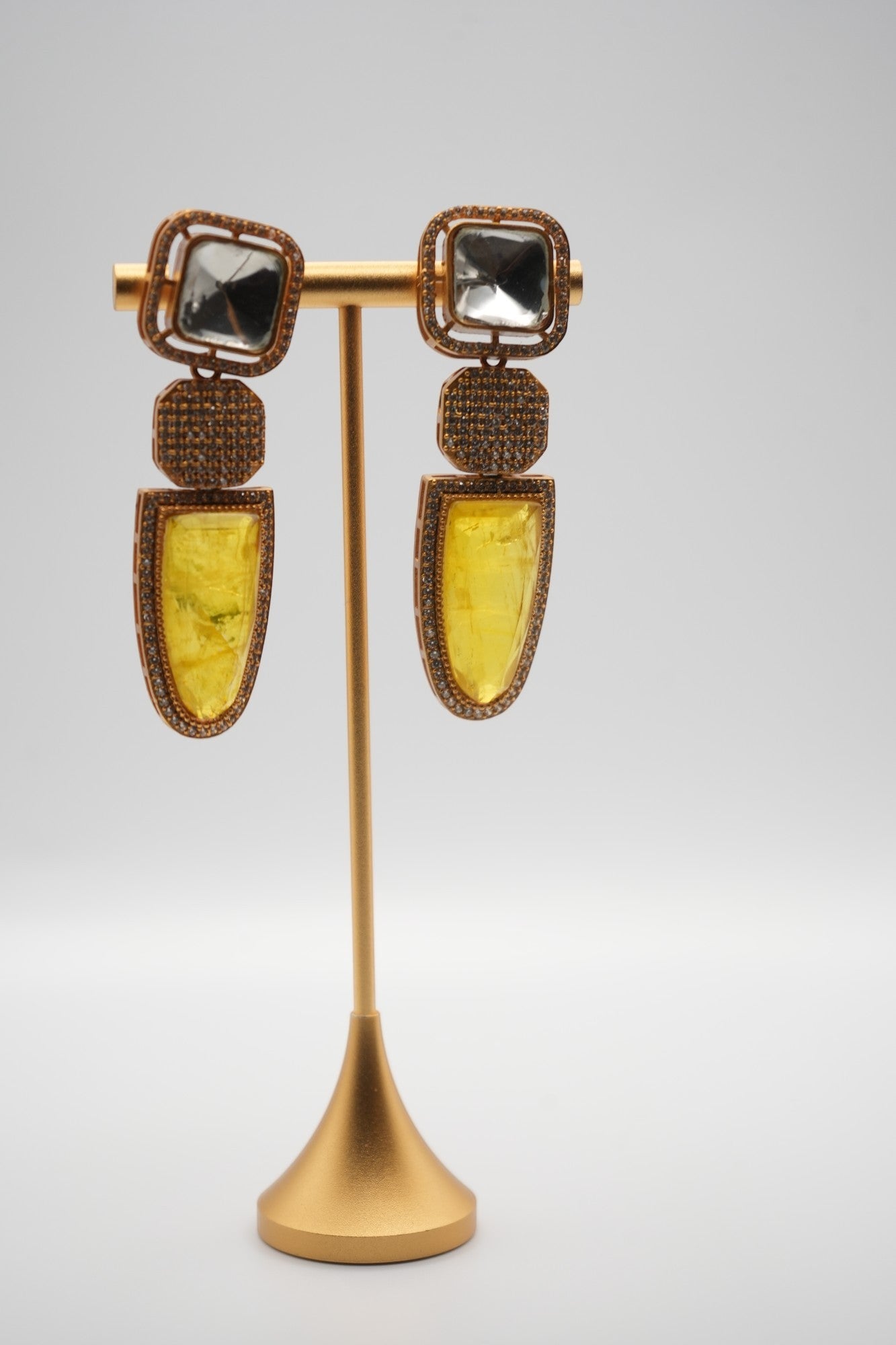 Citrine Cascade: Geometric Gem and Crystal Drop Earrings