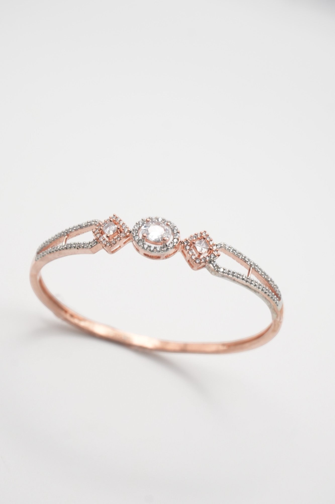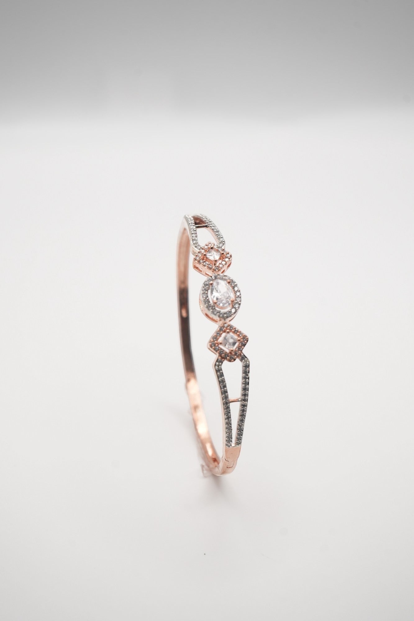 Dazzling Trio: Rose Gold & Crystal Oval & Square Bangle
