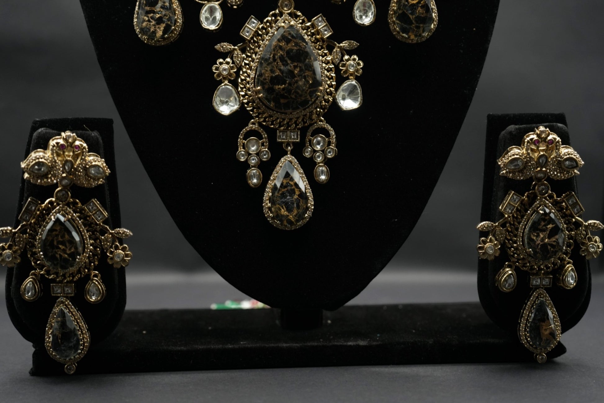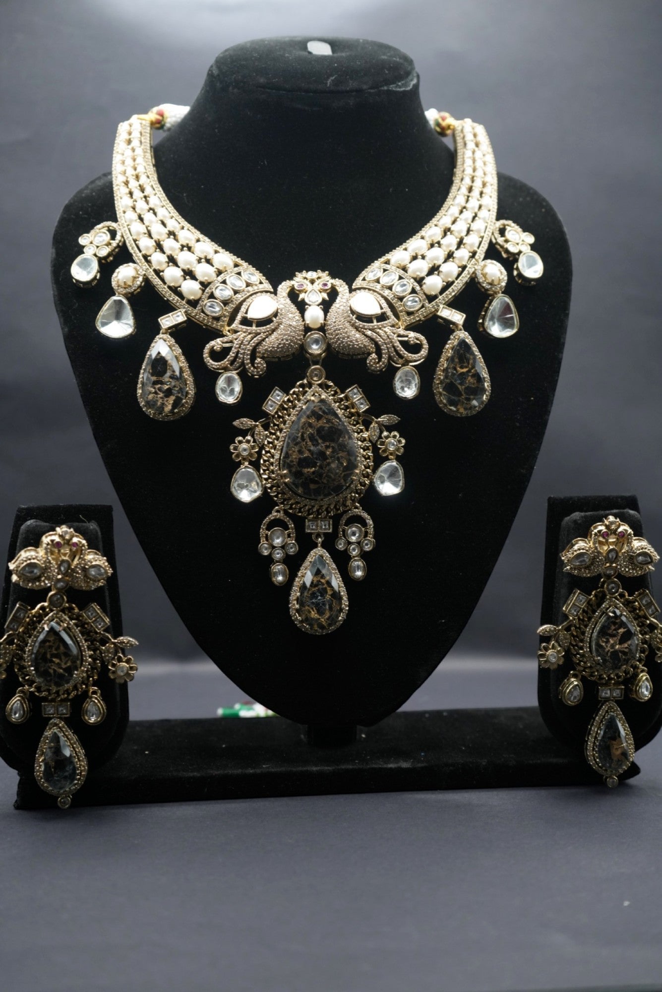 Discover refined elegance with this stunning gold colour choker and earring set, featuring a harmonious blend of modern charm and timeless sophistication. Designed to turn heads, this set is perfect for weddings, galas, and other special occasions.