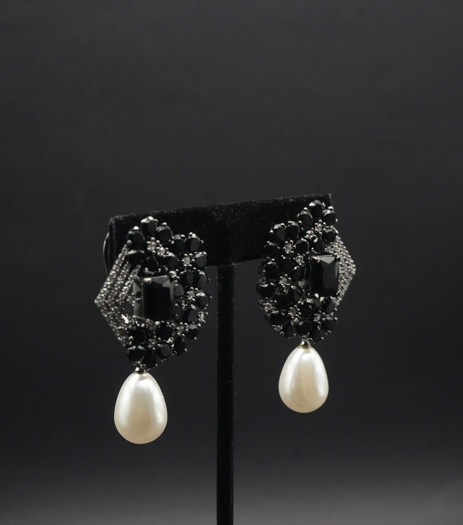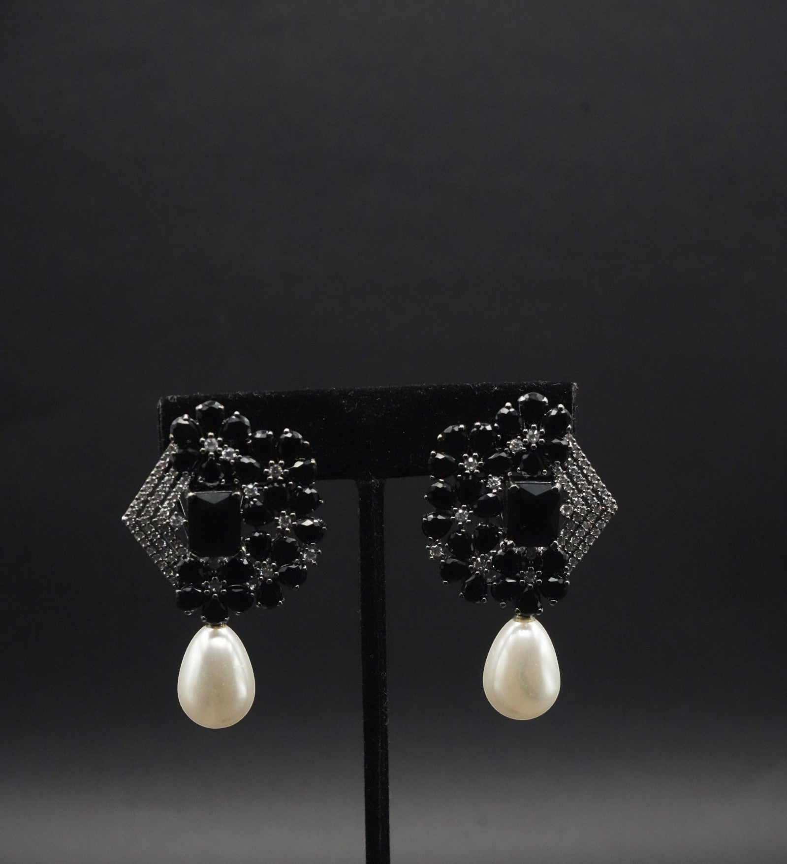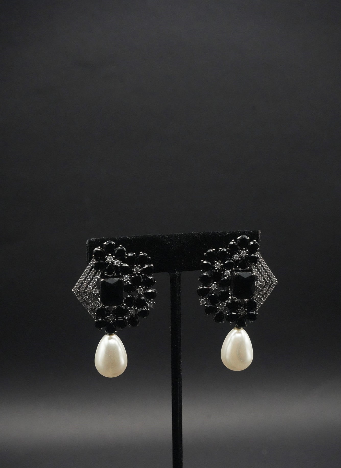Add a touch of timeless elegance to your collection with these stunning black stone and pearl drop earrings, designed to captivate and enchant.
