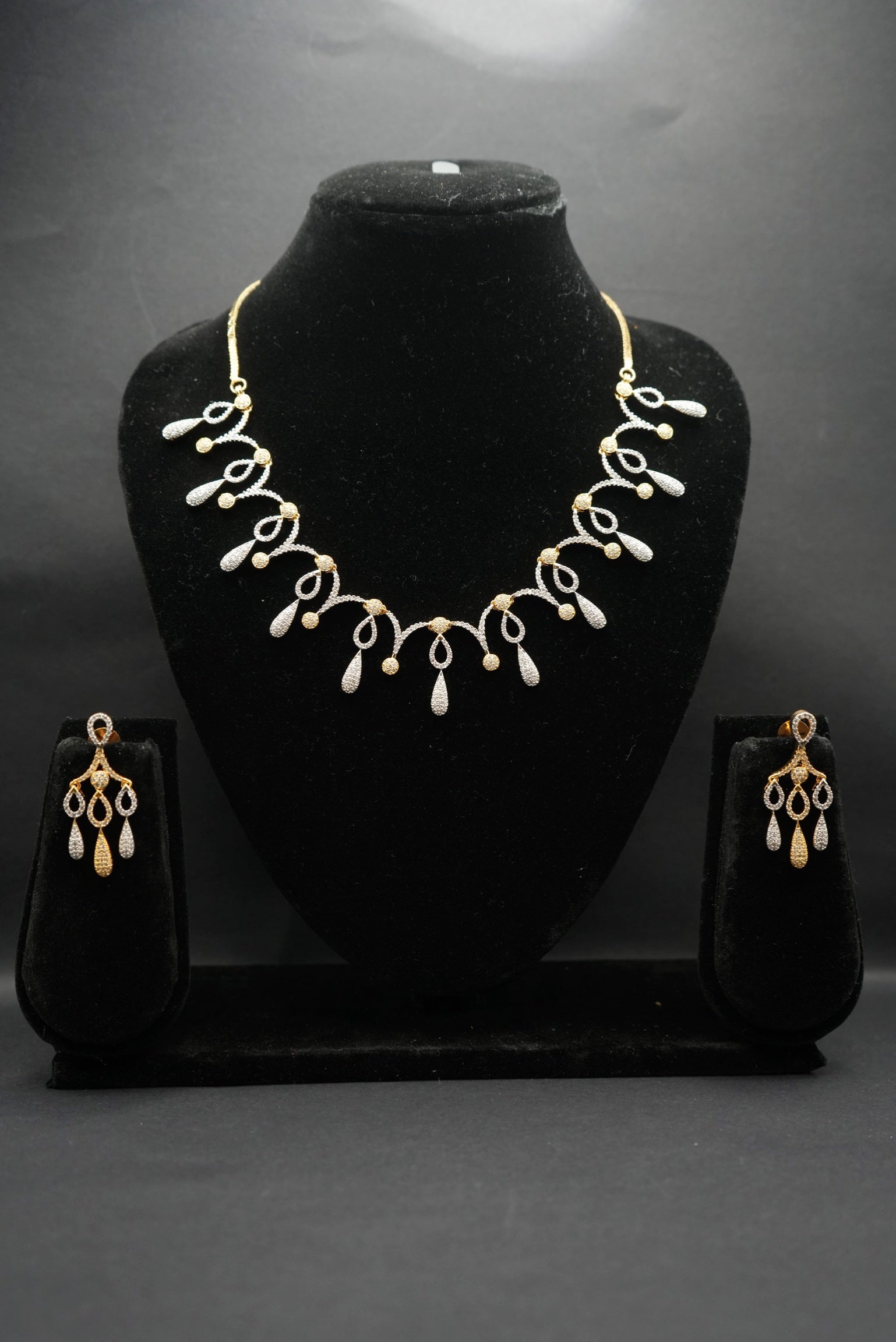 Elegant Gold-Tone Crystal Necklace and Earring Set