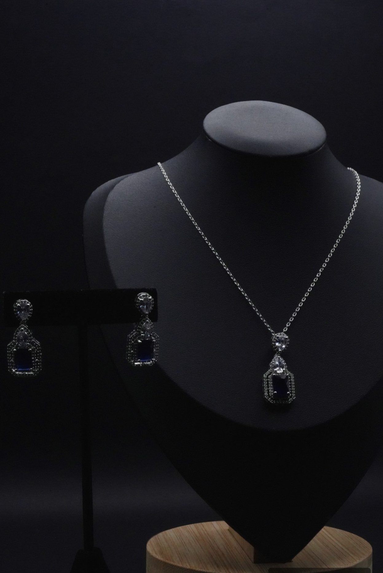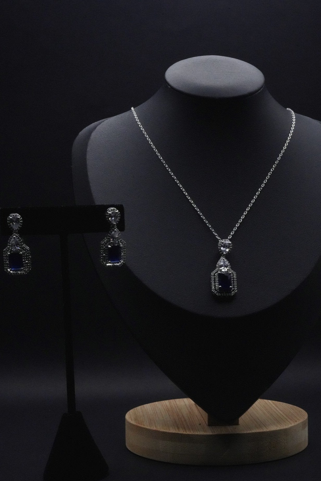 Elegant Silver coated Necklace and Earring Set with Sapphire Blue Gemstones