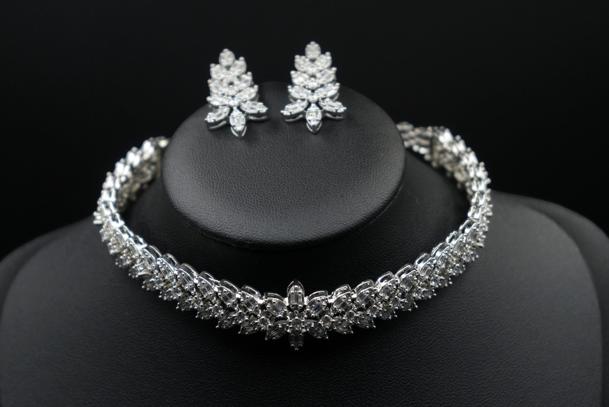 This elegant choker set from Lustrous Jewels features a dazzling, intricate design with a sparkling array of stones, perfectly complemented by matching earrings. The choker’s floral-inspired pattern adds a touch of sophistication and glamour, making it an ideal choice for special occasions and formal events. Embrace timeless elegance with this stunning statement piece❤️