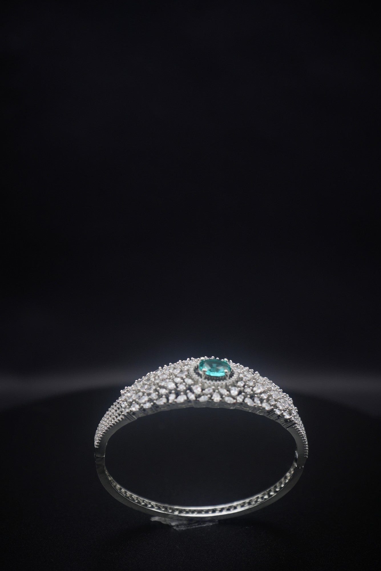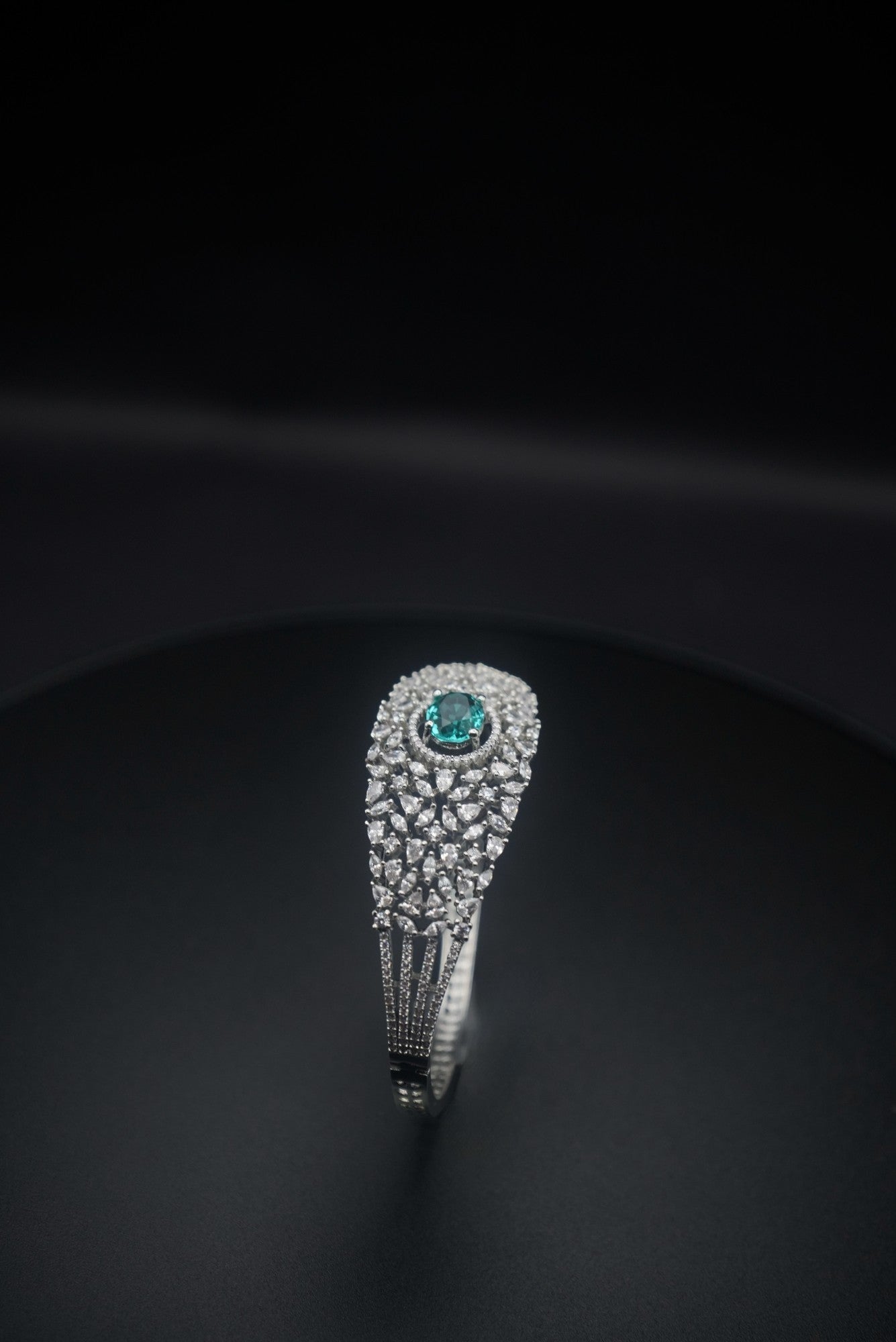 Emerald Glimmer: Crystal and Zircon Bangle Bracelet