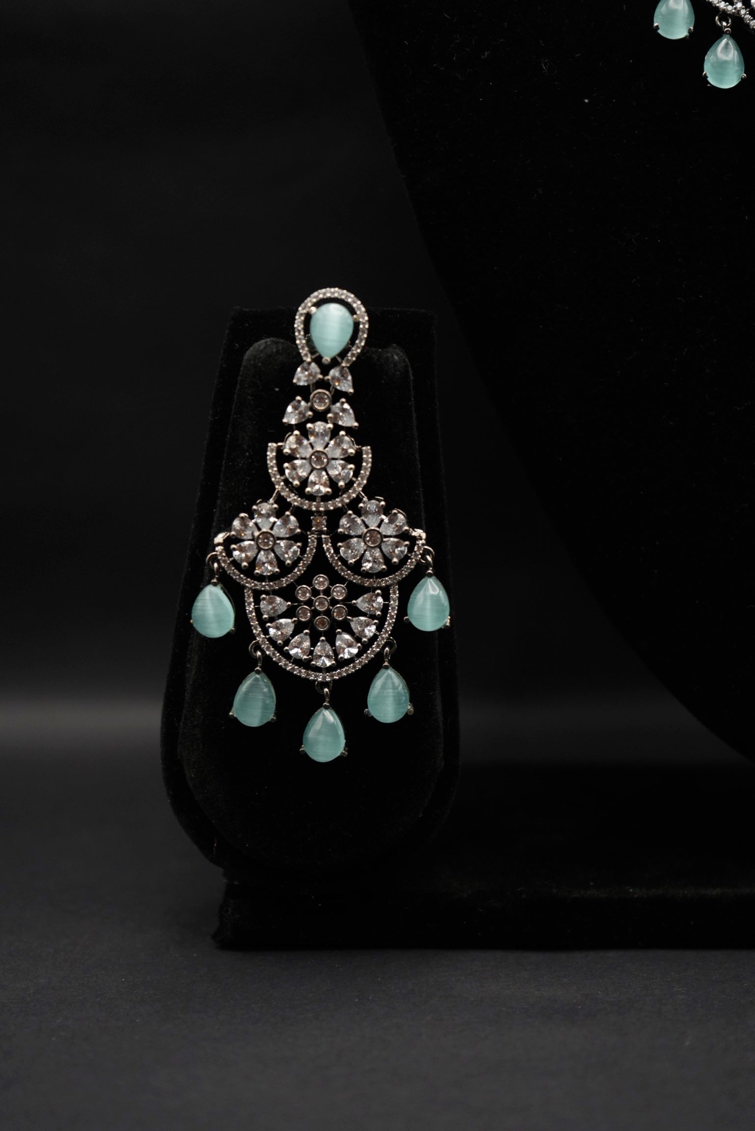 Exquisite Crystal and Aqua Droplet Necklace with Earrings