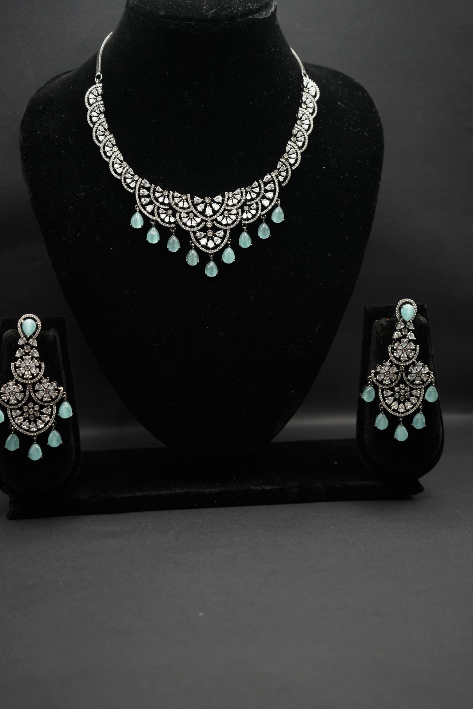 This stunning jewelry set includes a necklace and matching earrings, perfect for adding a touch of elegance and sophistication to any outfit. Featuring intricate craftsmanship and luxurious materials, it is ideal for weddings, parties, or formal occasions.
