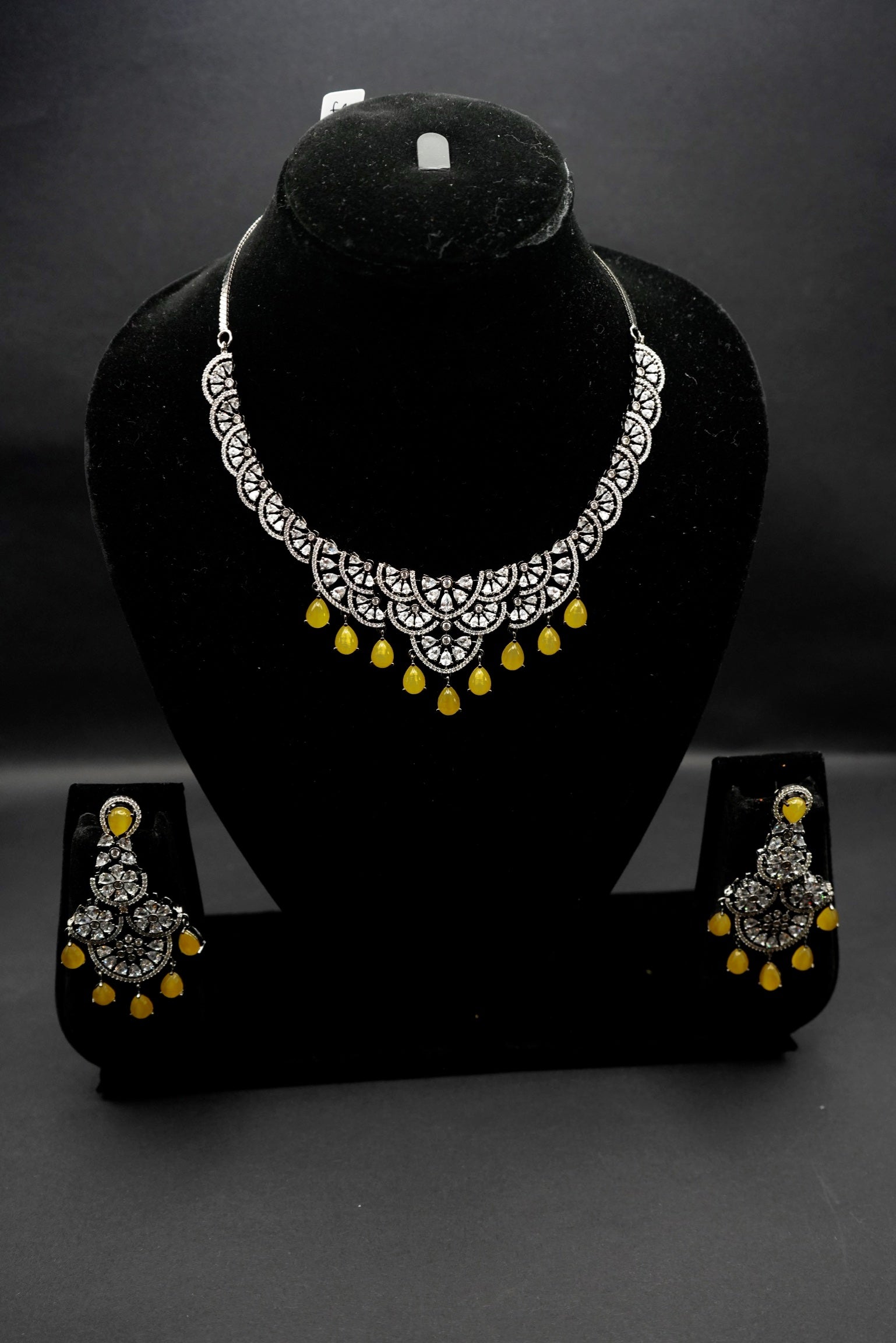 This stunning jewelry set includes a necklace and matching earrings, perfect for adding a touch of elegance and sophistication to any outfit. Featuring intricate craftsmanship and luxurious materials, it is ideal for weddings, parties, or formal occasions.