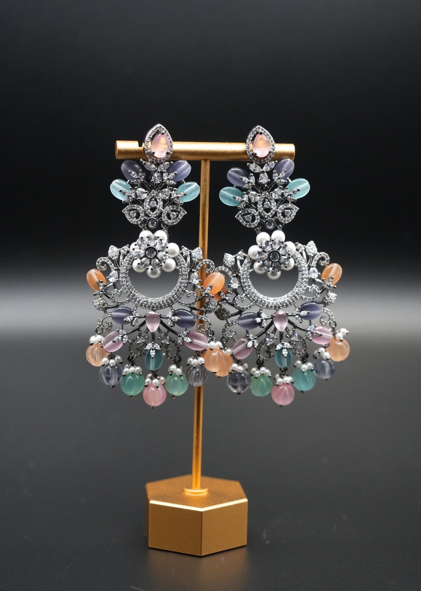 Presenting our exquisite Lustrous Jewels Chandelier earrings designed with intricate detailing and a blend of pastel-colored beads, pearls and sparkling stones. These statement pieces are crafted to add a touch of elegance and grace to any outfit. Ideal for formal occasions, they embody sophistication and charm, allowing you to embrace your distinctive beauty.