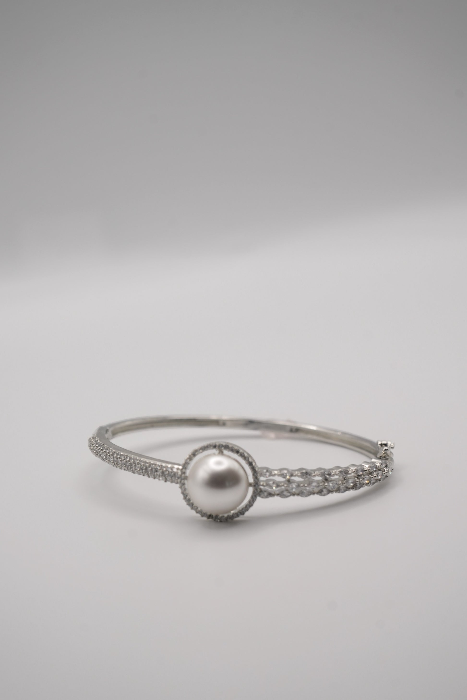 Luminous Grace: Pearl & Crystal Pave Bangle Bracelet