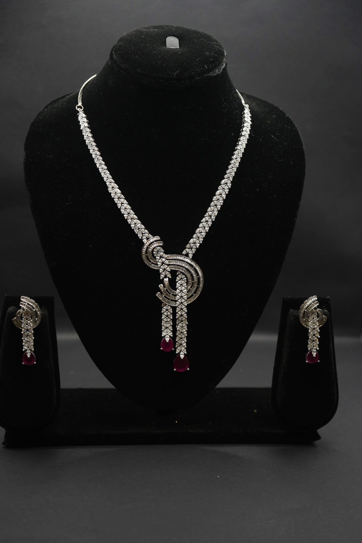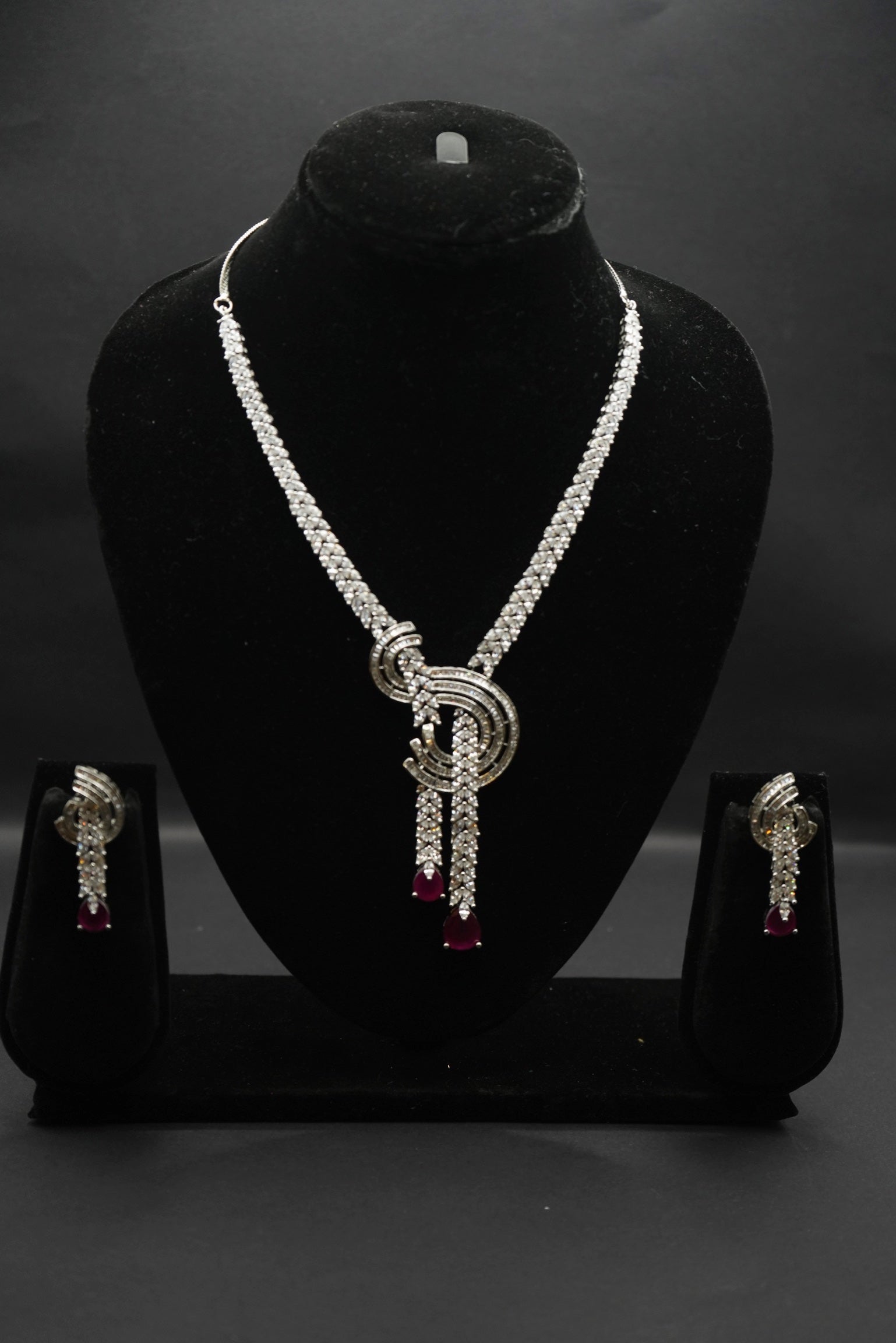 This stunning necklace and earring set exudes luxury with its intricate detailing, a striking combination of sparkling stones, and Silver accents. Perfect for evening wear, special events, or adding a statement to any outfit, this set combines timeless elegance with modern design.