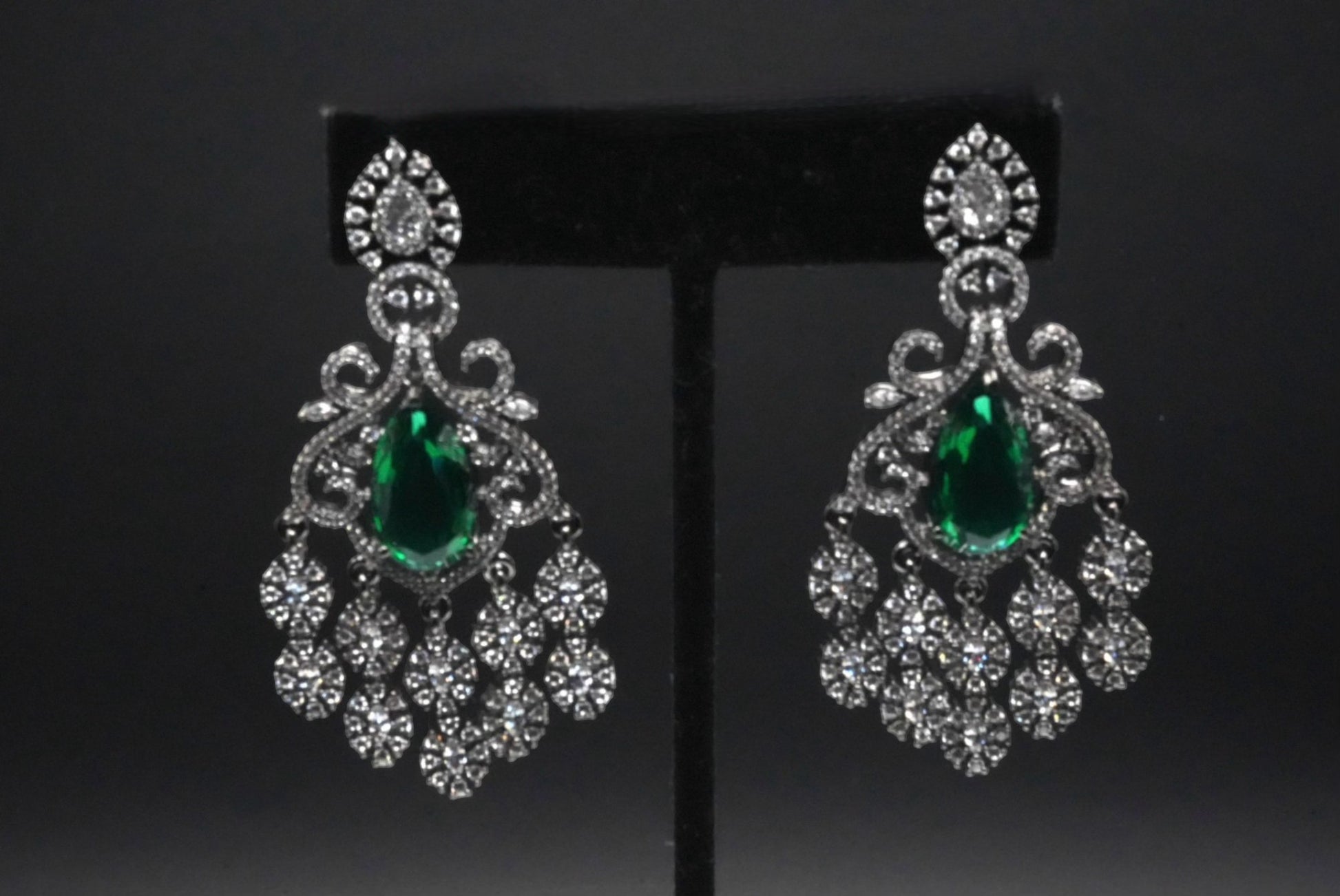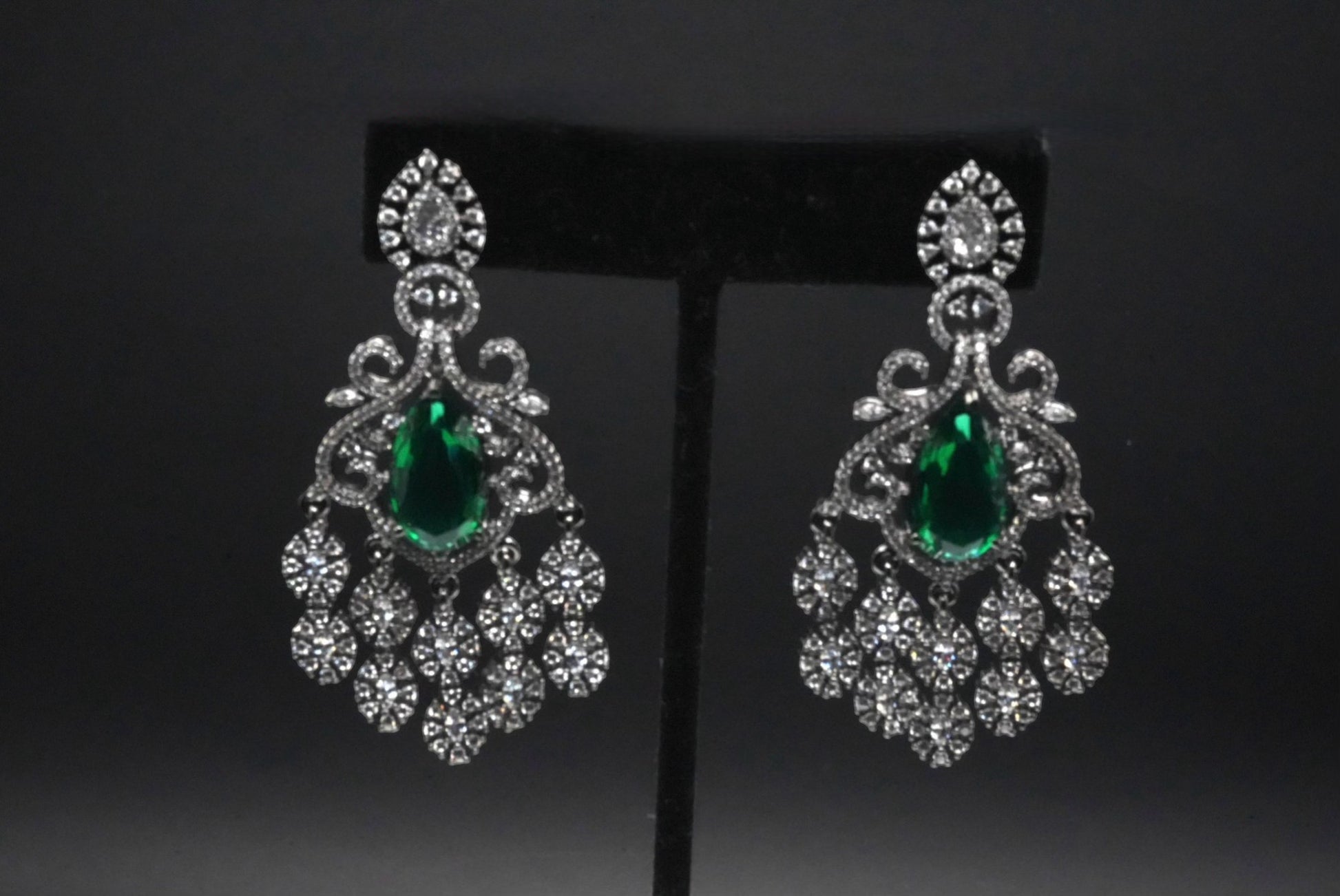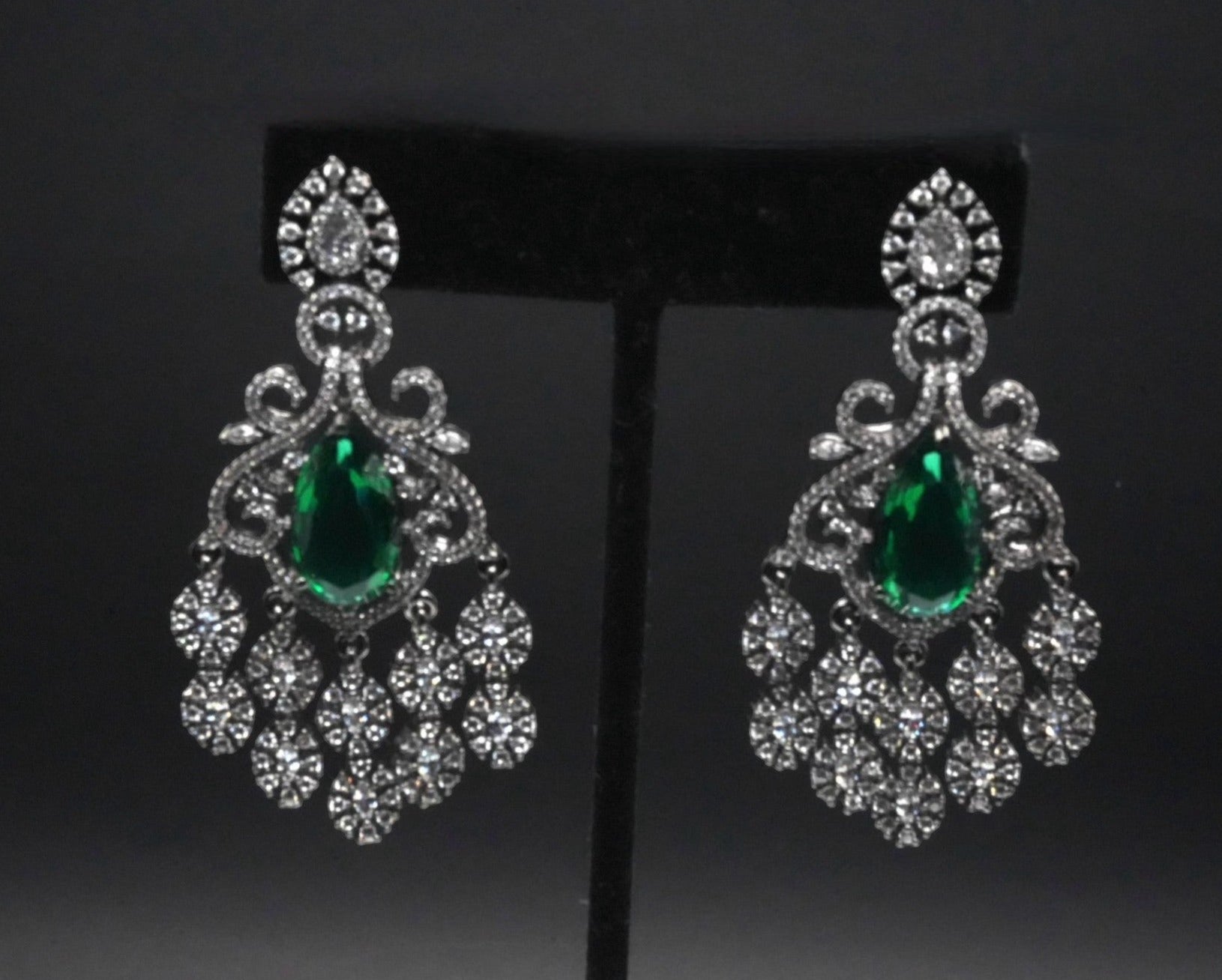Adorn your ears with the grandeur of these Majestic Emerald Teardrop Chandelier Earrings, a dazzling creation that combines the opulence of emeralds with the timeless elegance of diamonds.