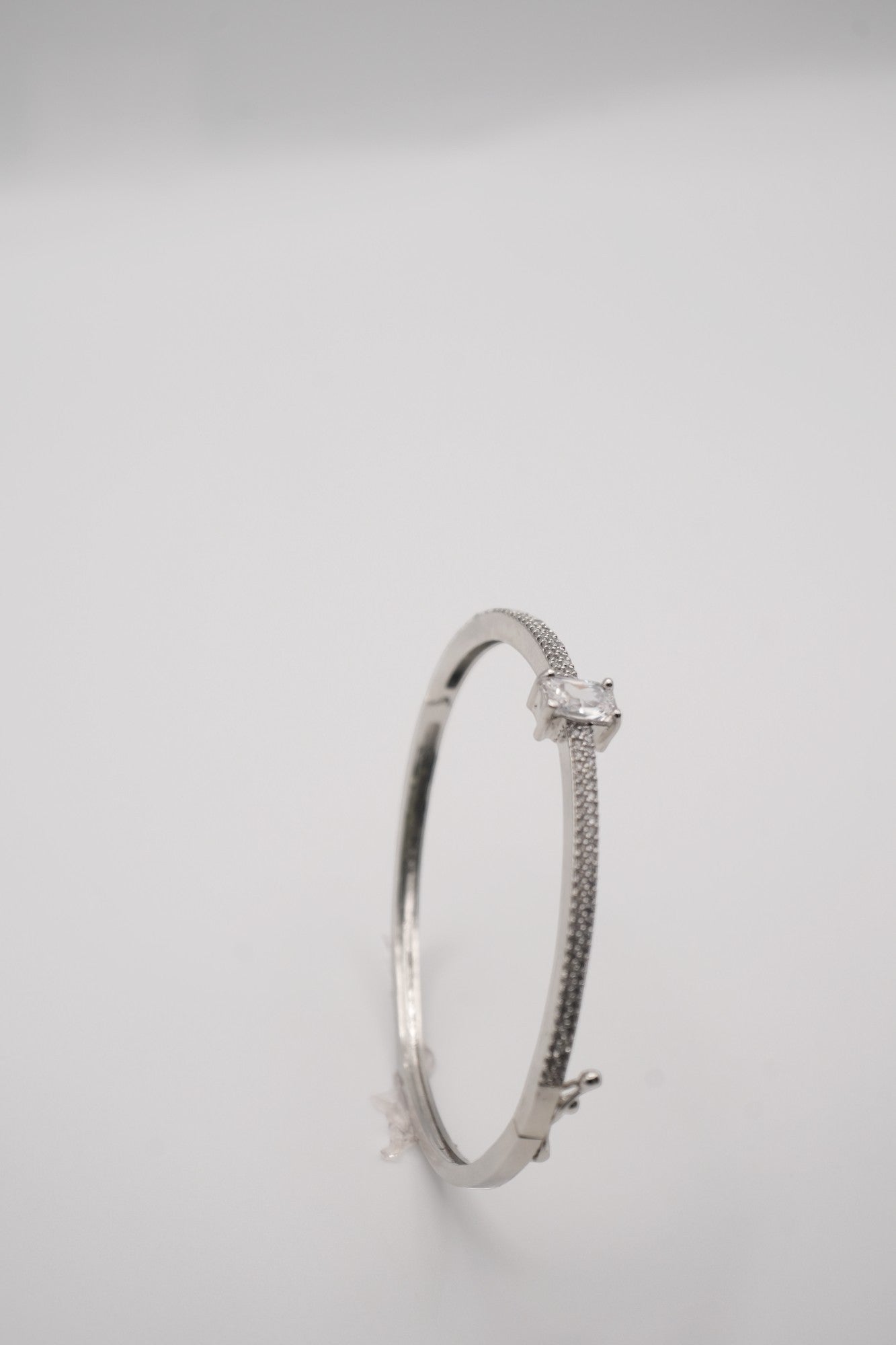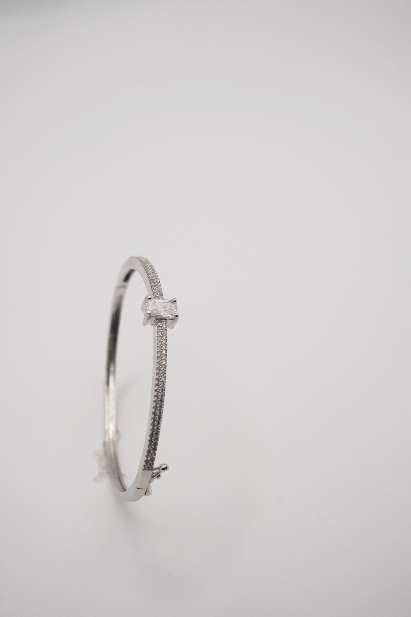 Modern Allure: Silver coated & Baguette Crystal Bangle