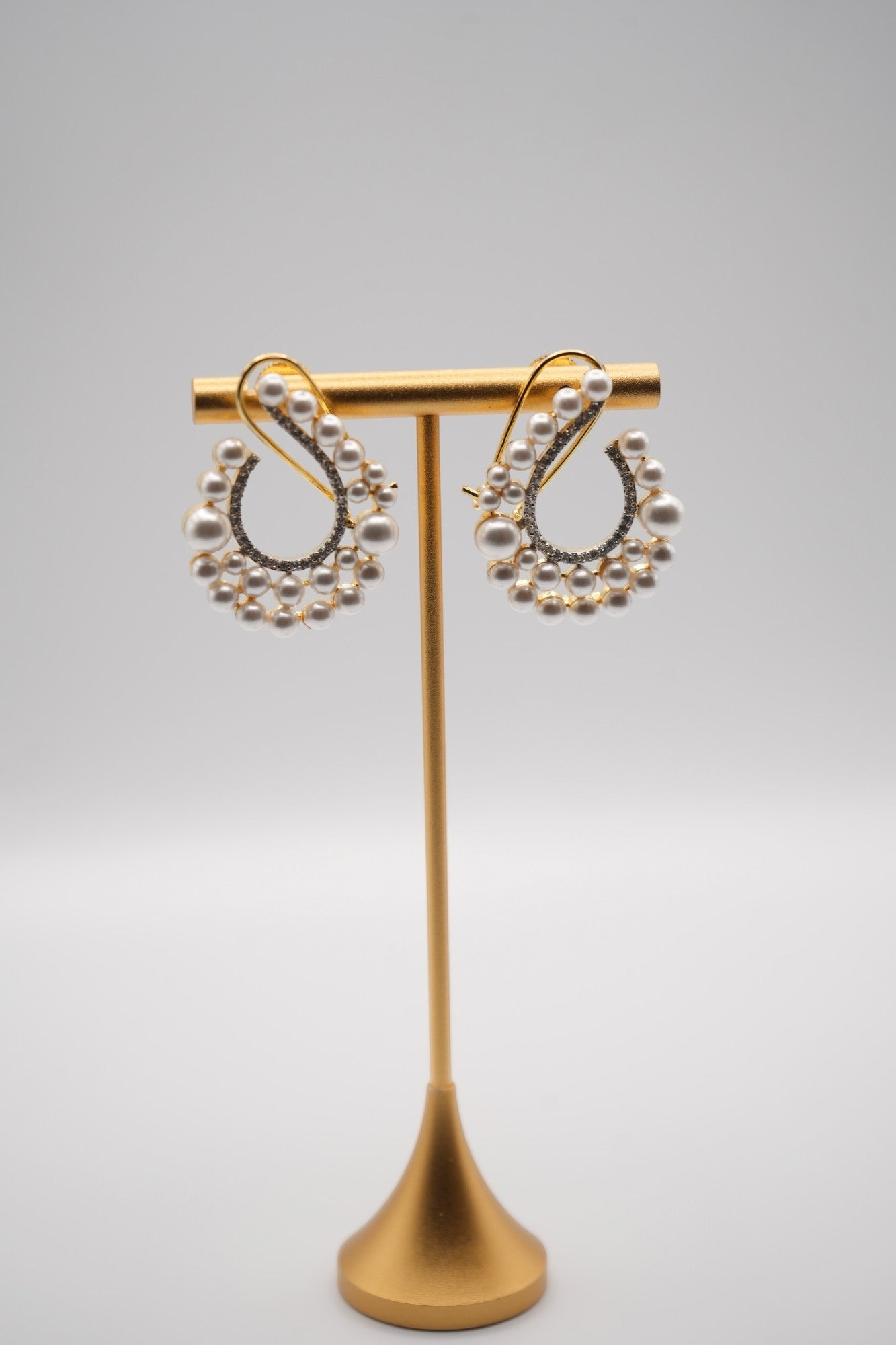 Indulge in the delicate shimmer of the "Pearlescent Cascade" Hoop Earrings. These elegant earrings feature a contemporary open hoop design lavishly adorned with lustrous faux pearls and sparkling crystals. The graceful curve and the cascading arrangement of pearls and crystals create a sophisticated and eye-catching accessory, perfect for adding a touch of refined glamour to any occasion.