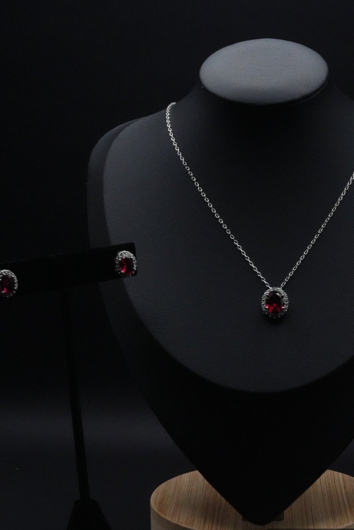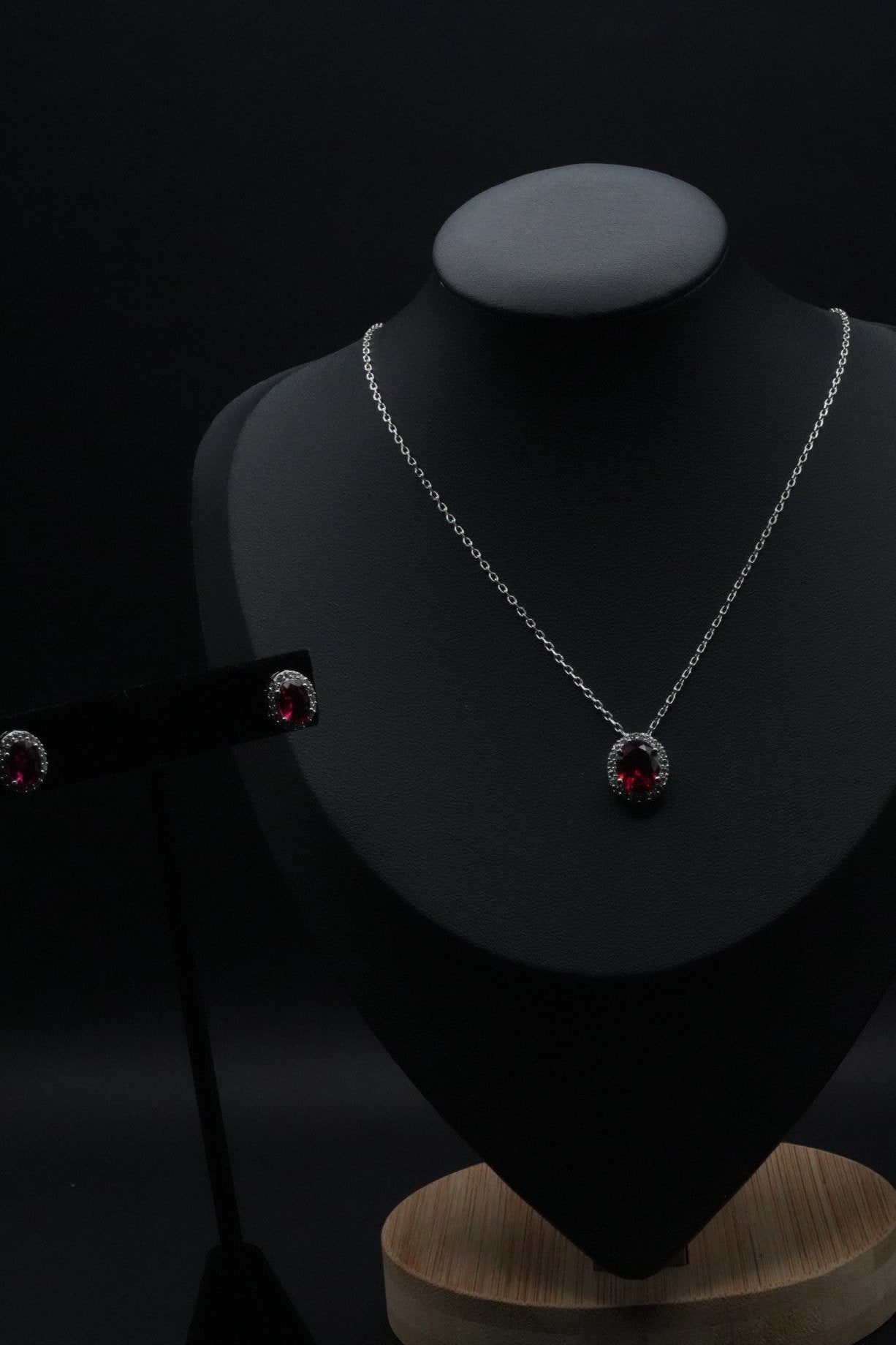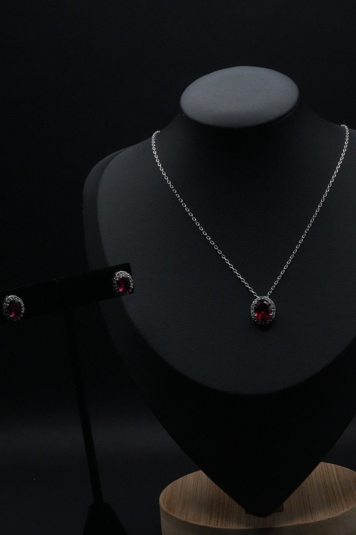 This Red Set is a testament to classic style and elegance, featuring stunning ruby simulants surrounded by halos of dazzling stone simulants. A perfect blend of rich color and sparkling charm makes this set a captivating addition to any jewelry collection.