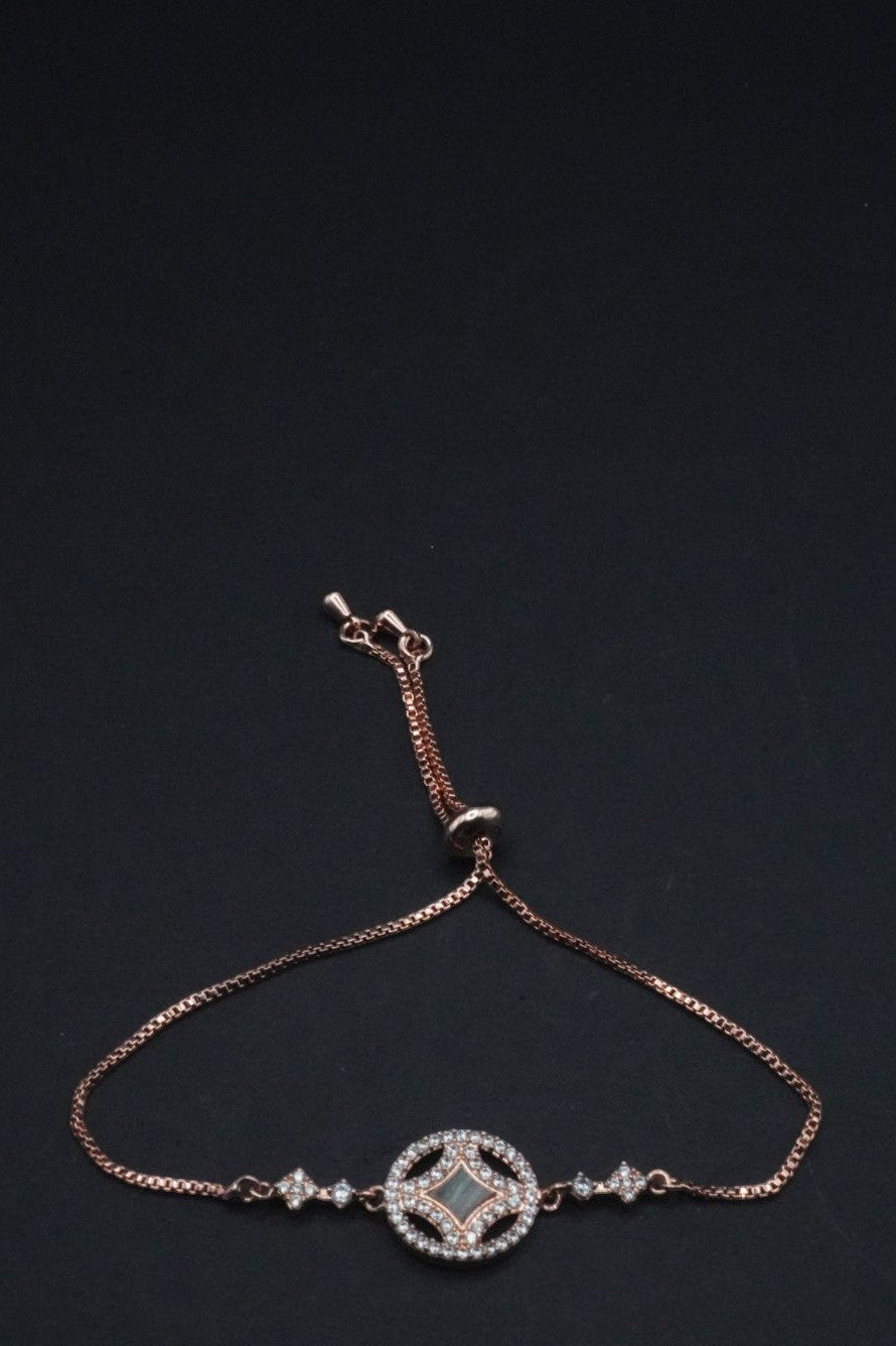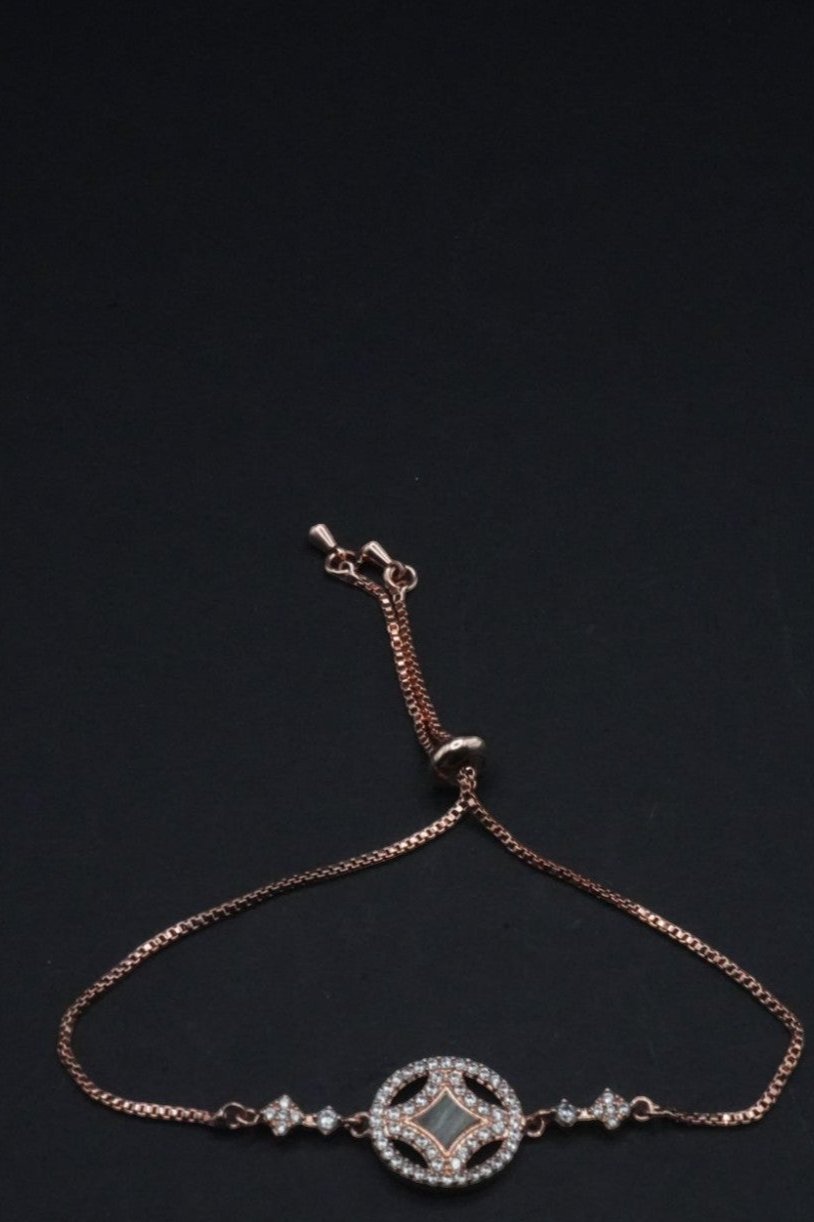 Rose Gold coated Adjustable Bracelet with Circular Crystal Pendant