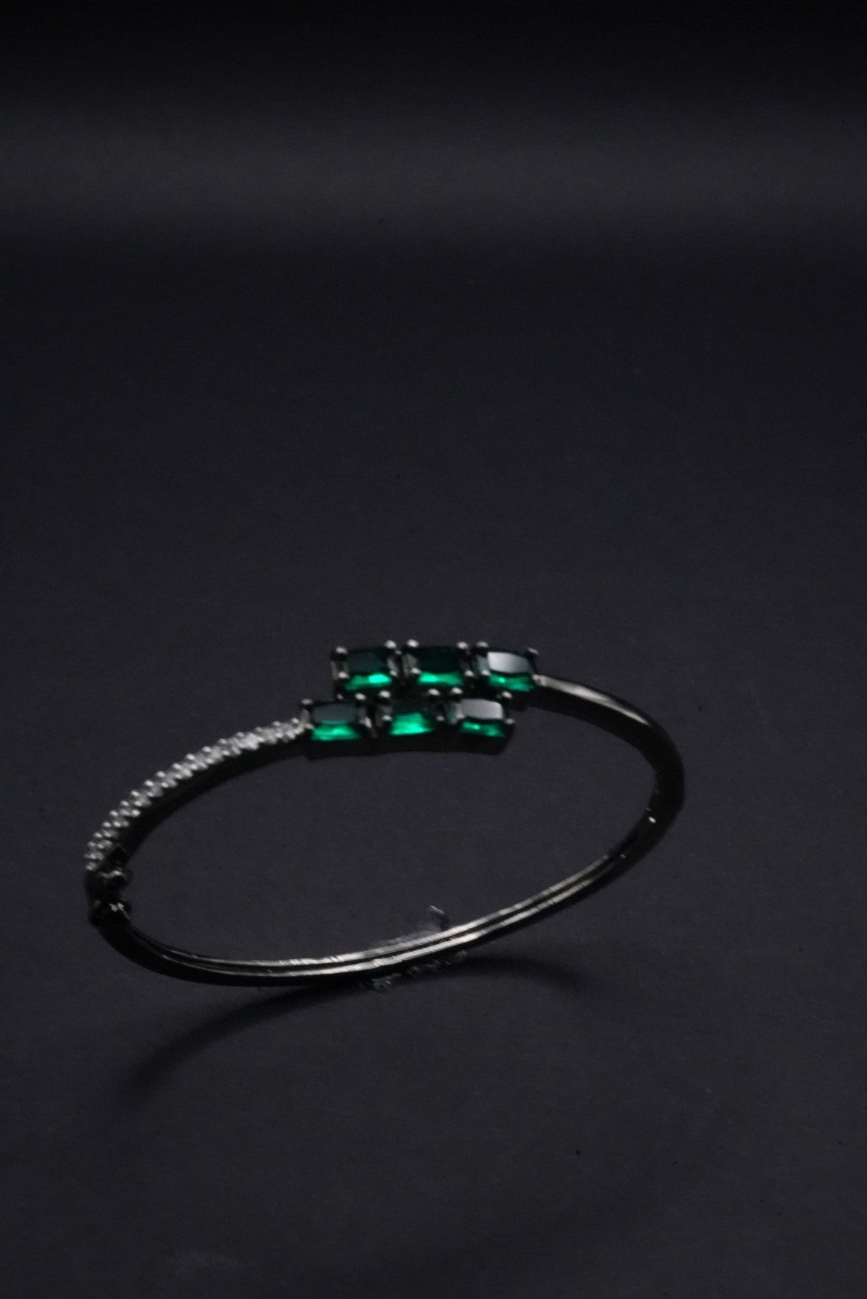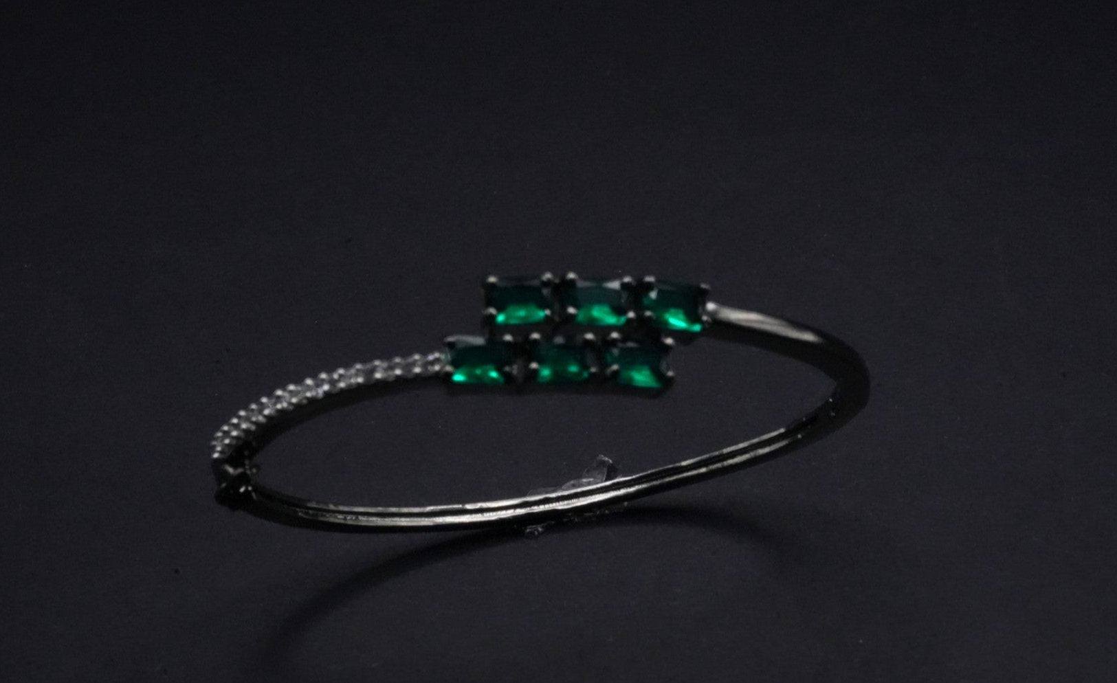 Sleek Silver coated Bangle with Emerald Green stones and Crystal Accents
