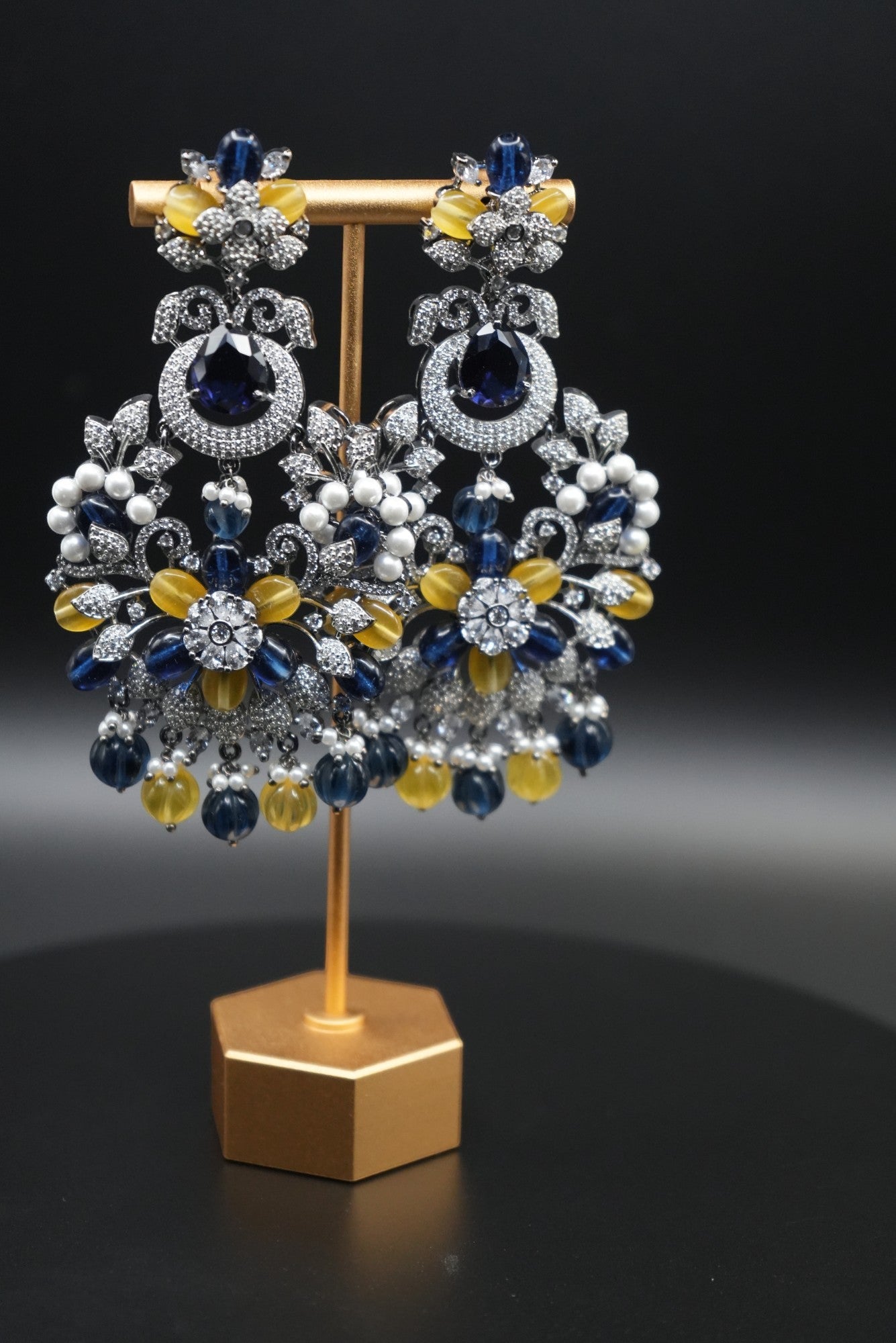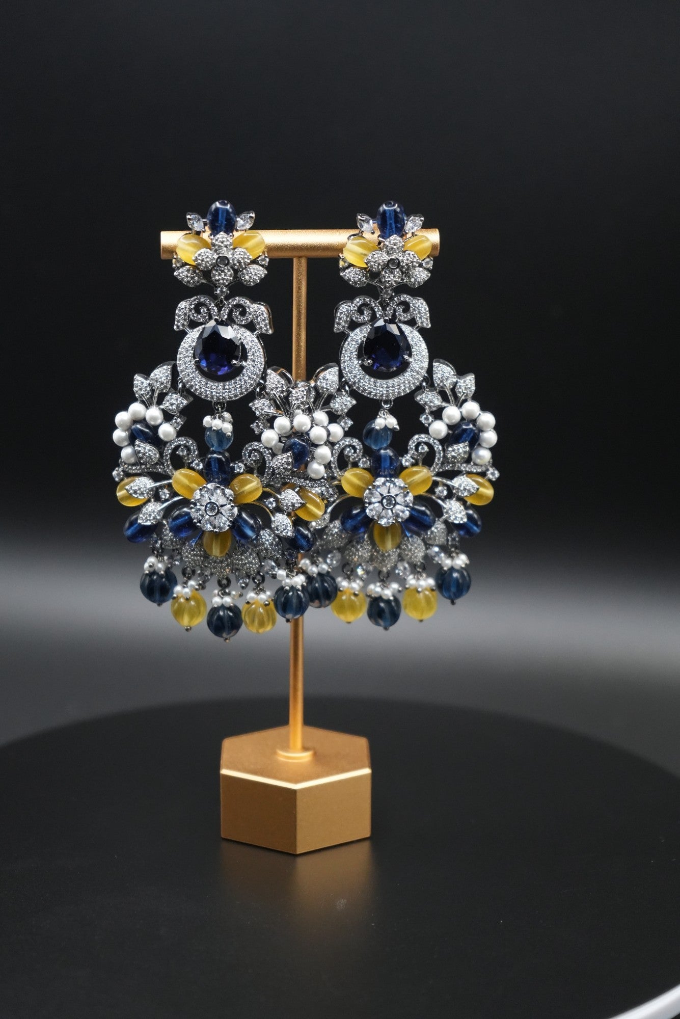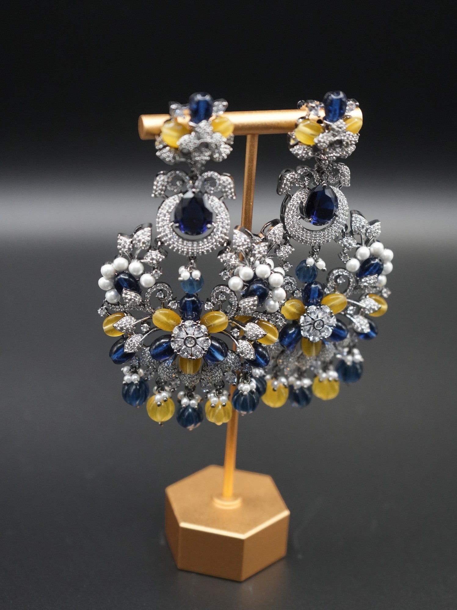 Stunning Gemstone Chandelier Earrings with Intricate Crystal Detailing
